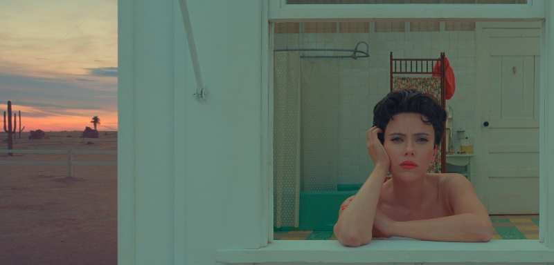 Anderson’s quirky attitude is playfully represented here by these experiments, including a rocket backpack, a weapon and the ability to project an image on the moon. Setting the whole thing in the 1950s allows Anderson to inject a time when life seemed more straightforward, with a soundtrack of 50s tunes, none instantly familiar but fit perfectly to the events and characters on screen, with a colour palette made of bright blues, peach, and browns.
