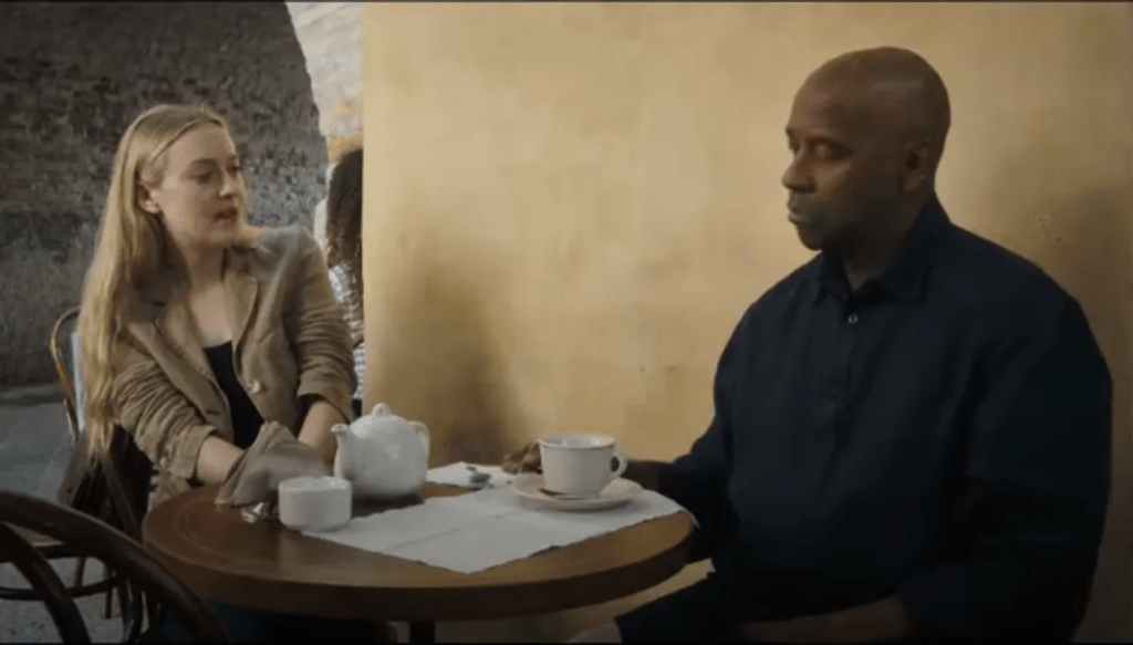 Denzel Washington is the star of these films; without his presence, they wouldn’t be as interesting. He is pure charisma. Even sitting at a cafe with his obsessive napkin folding routine, you are hypnotised by his scene persona. He has to do very little, yet you know he has done a lot. He is reunited with his former co-star of Man on Fire, Dakota Fanning. Now grown up, she plays the CIA operative who he lets into his world without getting too close, and the brief moments they share scene time is like waiting for that moment in Heat with Pacino and De Niro, although not as legendary.