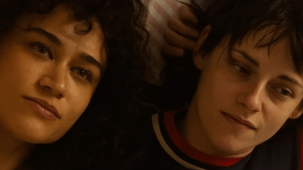 The cast is superb. Ed Harris, Lou’s father, is monstrous, not only in his characteristics but also in his hairstyle. He still has the power to disturb even when he isn’t threatening. Dave Franco is equally nasty as Lou’s brother-in-law and plays ultimately against type. A massive surprise from an actor who, in real life, is genuinely lovely. Yet, if the film’s biggest star isn’t Rose Glass, it has to be Kristen Stewart and Katy O’Brien, as well as Lou and Jackie. Stewart proves once again that she is one of the scren’s most exciting actresses around, taking this unassuming woman whose job is sticking her hand inside blocked toilets, to a world of sex and violence in the blink of an eye, just makes her so fascinating to watch. Watching Lou grow on screen is a pleasure.