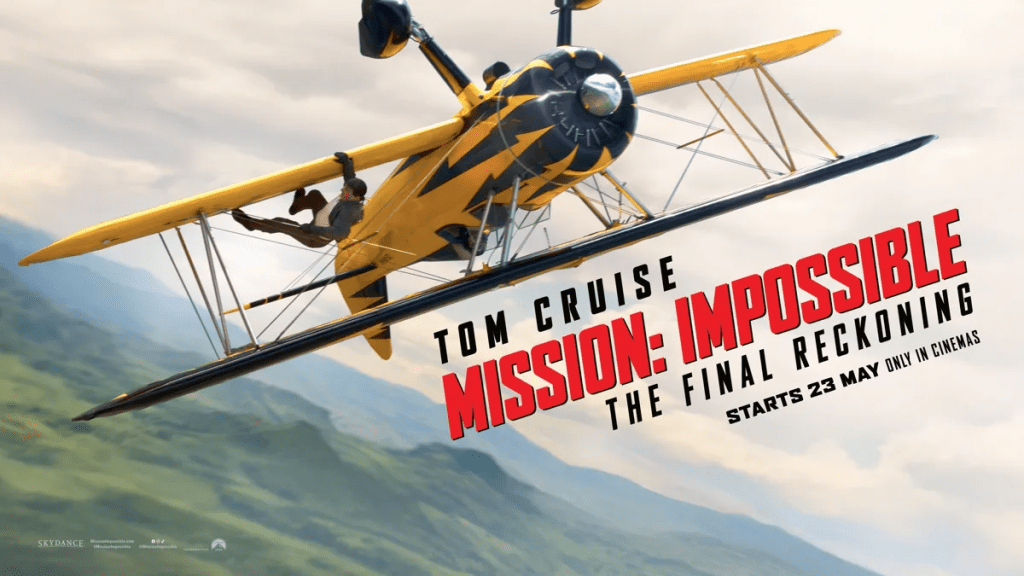 I wonder if Tom Cruise wakes up in the morning with a thought of doing something dangerous, then goes and tells his production team to put it in a movie, because, once again, the 8th and, possibly, final episode in the hugely successful Mission: Impossible series, The Final Reckoning, has the Cruise doing things that other movie stars get trained stunt people to do. Let’s face it, it’s the reason we keep going back for more in this incredibly exciting, if constantly ludicrous, franchise. If this is the last film, it’s not a bad way to go out, with Cruise hanging from a biplane.