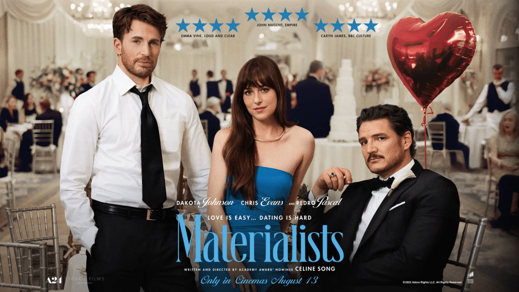 Celine Song burst onto the scene with her beautiful, poignant love story, Past Lives, in 2023. Anticipation for her follow-up was high. Materialists is a different love story focusing on another triangle like her previous film, but this time in a very different world and with a different attitude. However, what sounds like a good idea on paper fails to ignite on the screen, and a secondary story about matchmaking proves to be a far more interesting aspect than the main tale.